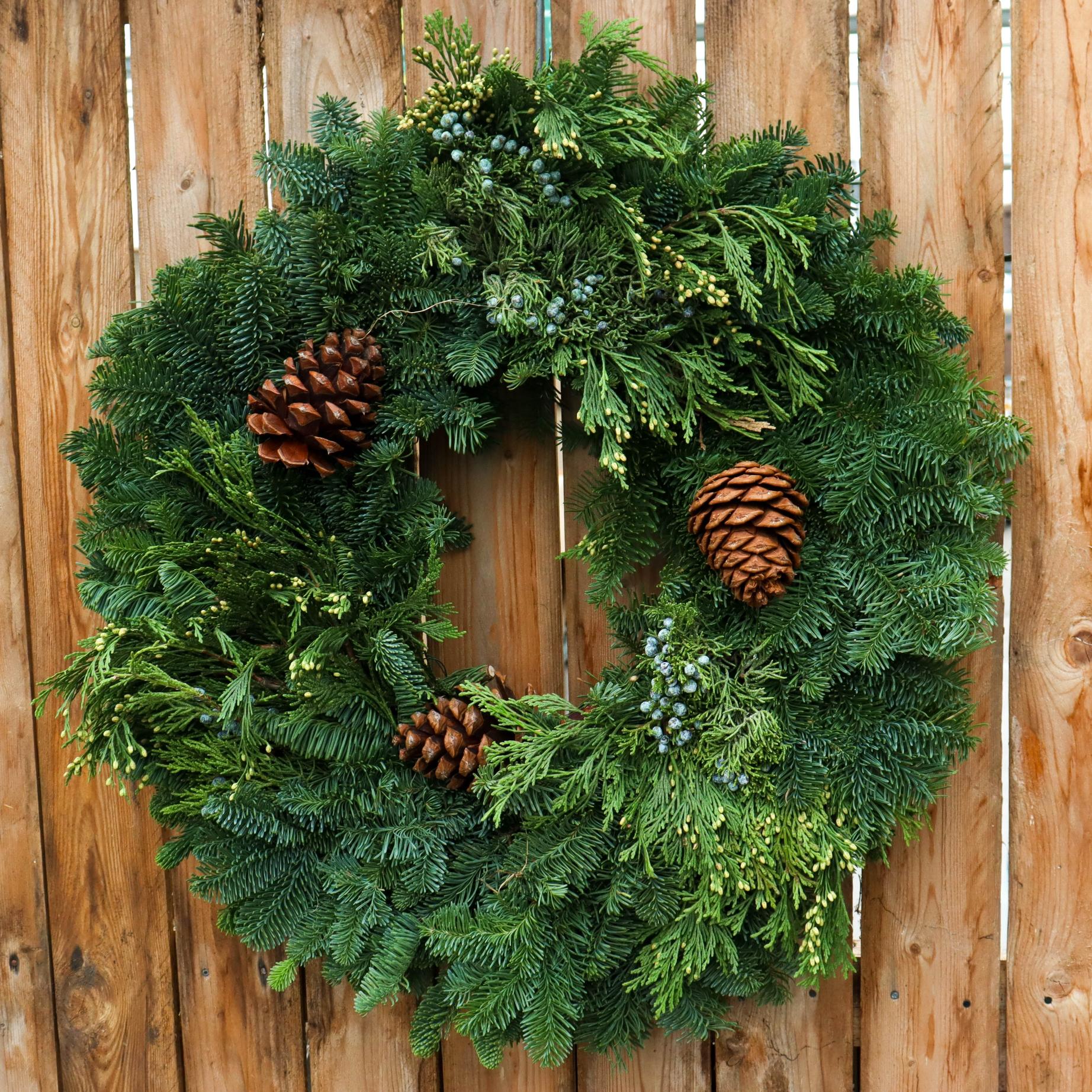 Mixed Noble Fir Wreath with Pinecones